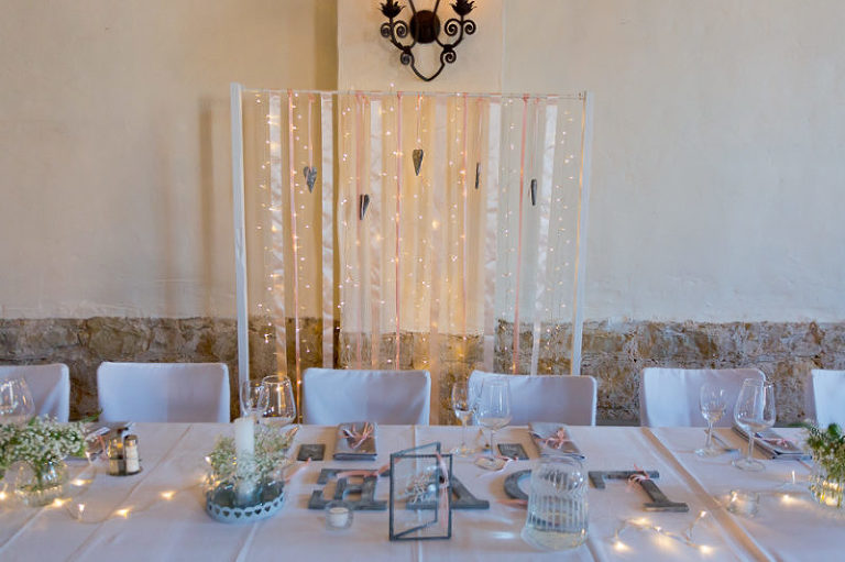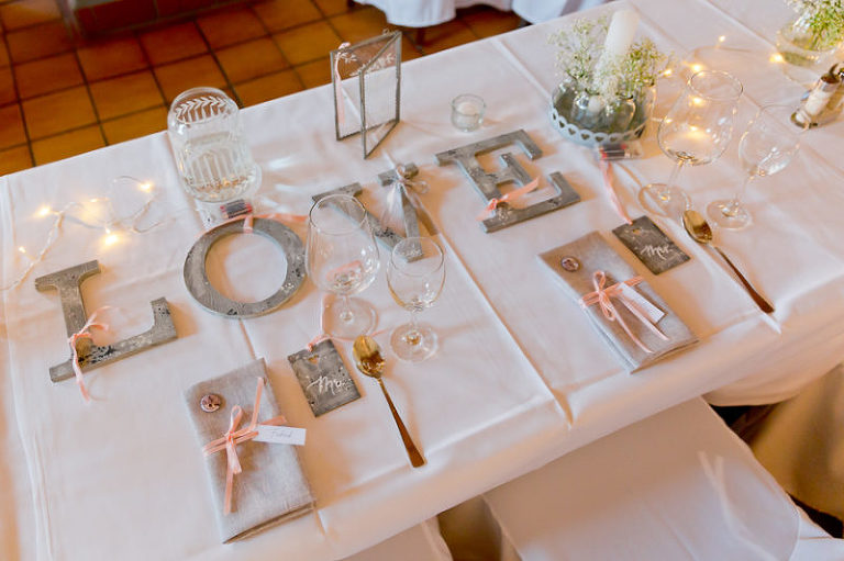 Katrin hat mit dem Brautpaar die Location so wunderbar dekoriert – das Dekokonzept ist mega. Haaaach schön…